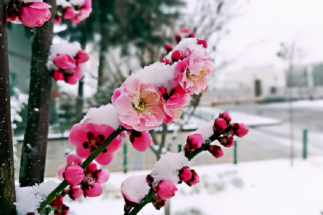 9、春雪满空来,触处似花开。不知园里树,若个是真梅?冬季残歌,寒风萧瑟,伫立落雪盼着你细步而来,待安好笑颜。听,雪花飘零梅树枝头,傲骨寒梅正迎风雪笑,你是否会有几丝欣慰吧。