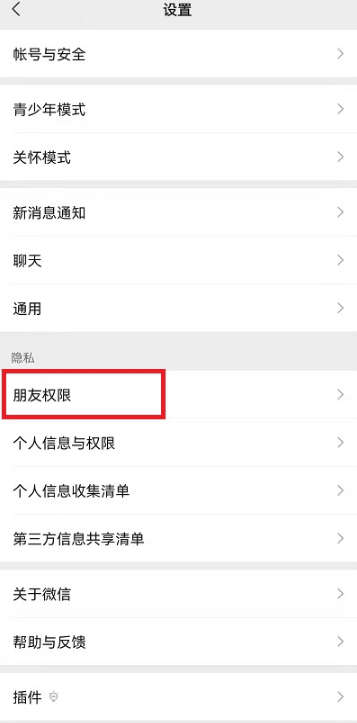 3、在设置界面中,就可以找到【朋友权限】。