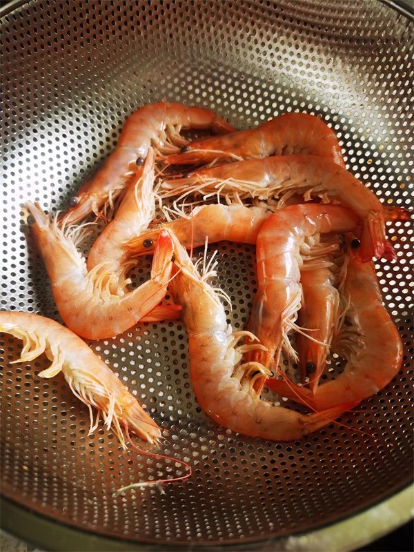 将水烧开,将虾放入开水里,烫到变色立即捞出来,切忌不要烫时间长,之后放凉控干,放入冰箱。