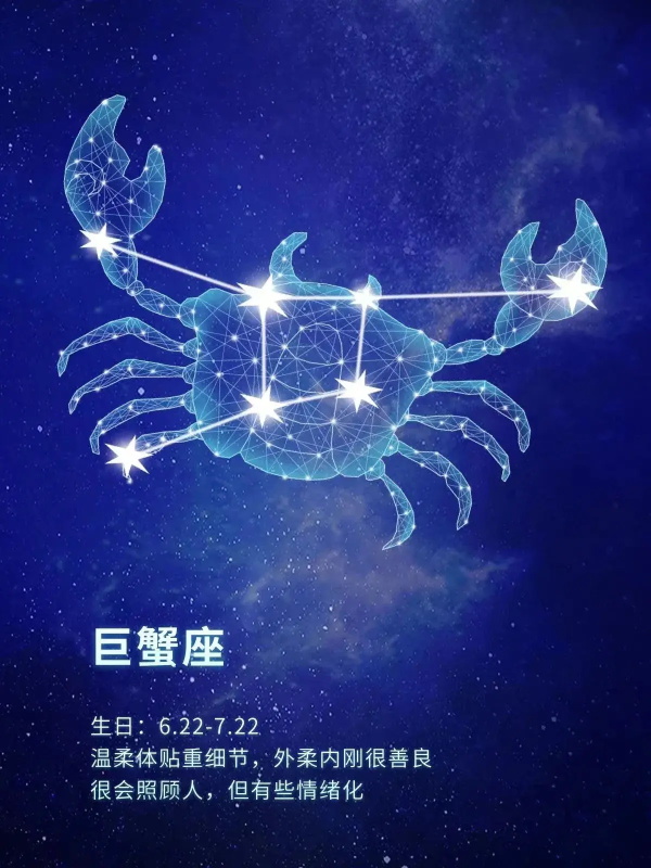 6月22日~7月22日,巨蟹座,Cancer,水象星座。