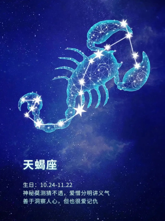 10月24日~11月22日,天蝎座,Scorpio,水象星座。