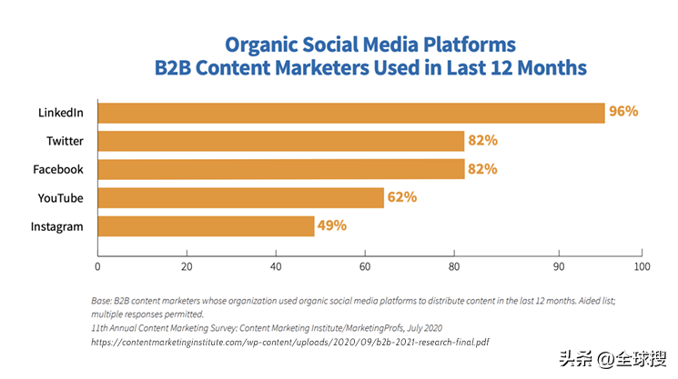 2.约有82%的B2B内容营销人员在使用Twitter