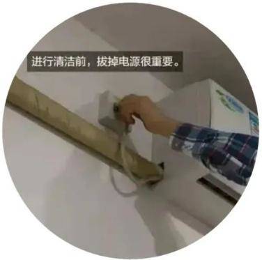 这是最容易忽视的步骤,清洗前一定要拔掉空调插头,以防触电!