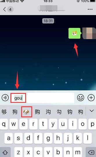 5、也可以直接输入拼音gou,就可以看到吐舌头的可爱狗。