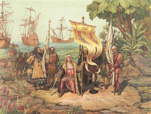 船员们欢欣雀跃,因为航行了两个多月,他们这是第一次遇到陆地。哥伦布高高举起西班牙国王的旗帜,宣布此地为西班牙国王所有,并给这座岛屿取了基督教名字:圣萨尔瓦多,即“救世主”。
