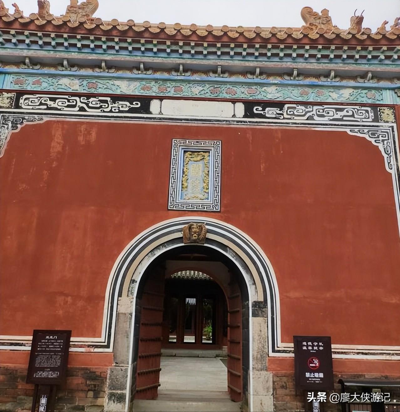 石牌坊的后面就是“大红门”,也叫作“山门”或“义门”,上面有“关陵”两个字。如果注意看,会看到大门上有很多的门钉,细数了一下,正好是九九八十一颗,这个在古代可是非常不得了的规格。