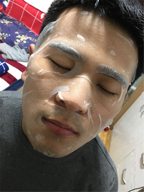 面膜是蚕丝的 贴到脸上很服帖 放上男票的脸 哈哈