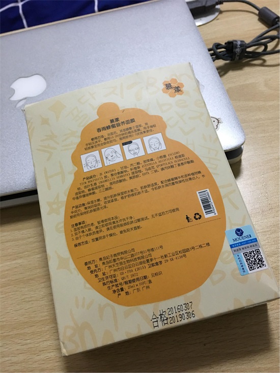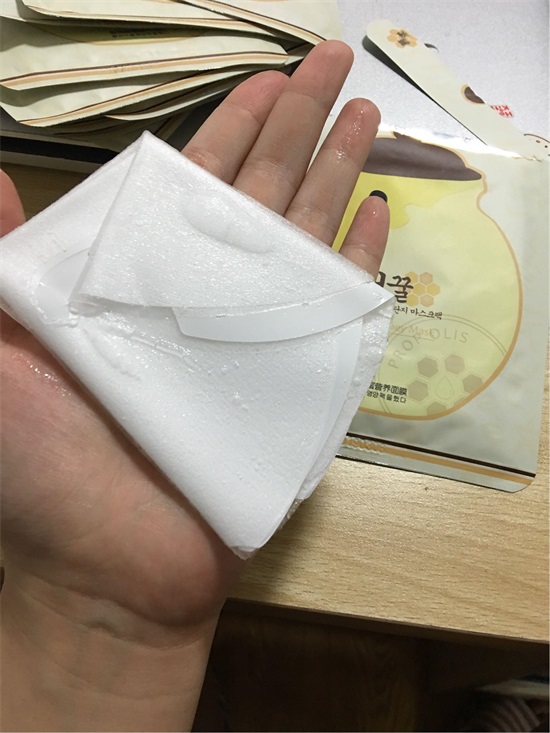 拿到包装的时候一下子放心了很多呢,上面画着一个大大的蜂蜜坛子,好像装了满满的蜂蜜似的,据说蜂蜜含量达到87%喔!真的是非常天然,相信敏感皮肤也可以用喔。面膜纸超薄,是那种蚕丝质地,贴在脸上十五分钟一点也不干,之前敷过其他的面膜十几分钟以后多多少少会有点干,尤其是那种纸张比较厚的,时间长了会不舒服!这个完全不会,那个精华还在脸上的时候照镜子没感觉皮肤有多好,但是洗完以后就惊艳了,毛孔都不见了,皮肤也白了一个色号,真的变白嫩了啊!亲身使用以后,发现这是我用过吸收最好的面膜,用后不粘稠都被皮肤吸收了不粘手,因为是蜂蜜所以很滋养,用后皮肤不干细纹也变浅了,用后的面膜可以贴在脖子上,可以防止长颈纹哦!