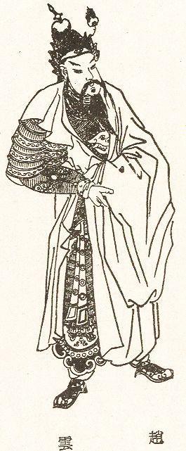 赵云,字子龙,常山真定人,公元154年生。书中描写他身长八尺,浓眉大眼,阔面重颐。公元194赵云初仕公孙瓒,。《三国演义》里,赵云在磐河之战解救了公孙瓒,并与河北名将文丑大战五六十合胜负未分。