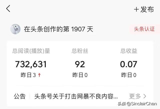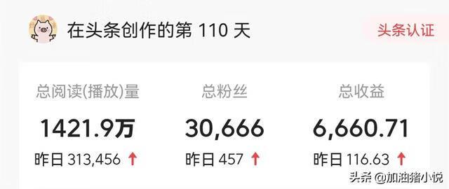 在这三个月里,我写了1000多条微头条。尤其是头两个月,我什么样的类型都尝试过。网红、娱乐明星、房地产、婚姻、彩礼、宠物、美食、职场、育儿……太多太多,什么样的类型我都想试一试,我想看看到底能不能出爆款,也试试出爆款的几率。最后,让我试出来适合我的都是什么类型的了。所以那些不容易出爆款的,比如宠物吧,我就不写了。还有育儿的,我发现我写了也很难出爆款,我也不写了。这样一来,心中做到有数,所以在选素材这一关算是差不多了,这样每天只要写10条,一般都有一条阅读量超过10万的,会有两条阅读量超过5万的,这样平均每天阅读量都在20万以上,有时候运气好还会更多,这样每天就差不多能赚100多块钱。因为我除了微头条还会写文章和问答。写文章和问答就是在攒钱。我觉得在头条上,你要想好你的定位是什么。你如果擅长写文章,那就写文章,如果擅长写微头条,那就写微头条。而我,最开始的定位就是做一名分享干货和个人成长的博主的。所以我文章是原本放在第一位的,但是我需要得到写微头条的经验,所以我就不得不先去写微头条,这样我总结出来经验了,我才能分享给大家。但是在我写的过程中,我发现文章的收益实在太少了。这就让我不得不把精力暂时先放在了微头条上了。我的收入主要就是来自微头条,接下来放上常规的数据。