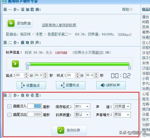 7、剪切好之后,我们可再设置歌曲淡入淡出、保存格式等其他选项。
