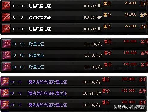 而由于纯正的欧皇装备有着好的寓意在加上购买人数增逐渐原因,价格也一路水涨床高,一般的100级假紫也就1W金币左右,但是纯正的欧皇之证却涨到了20W金币,比假紫要要贵20倍的价格,不得不说黑商真是会利用商机啊,利用玩家的玄学心理,因此囤货趁机抬价, 才造成如此高的价格。