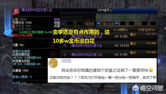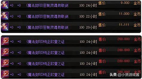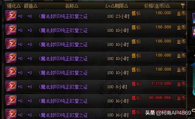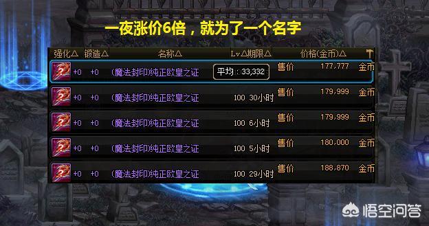 【纯正欧皇之证】:一把再普通不过的100级假紫武器了,放在平时,就算扔在地上,可能有的玩家都不屑于捡起来,可是现在呢,大家不妨打开拍卖行看一下,其他的100级假紫武器,最多不过几万金币就可以买一把,偏偏这把【纯正欧皇之证】售价高达18w金币!区区一把假紫武器,何德何能卖如此高的价格呢?虽然几十万金币不算多,但也不至于如此挥霍啊,但你还别说,买这把武器的玩家还挺多,莽夫昨天买了1把才15w金币,今天再看就已经18w金币了,瞬间赚了3w金币?