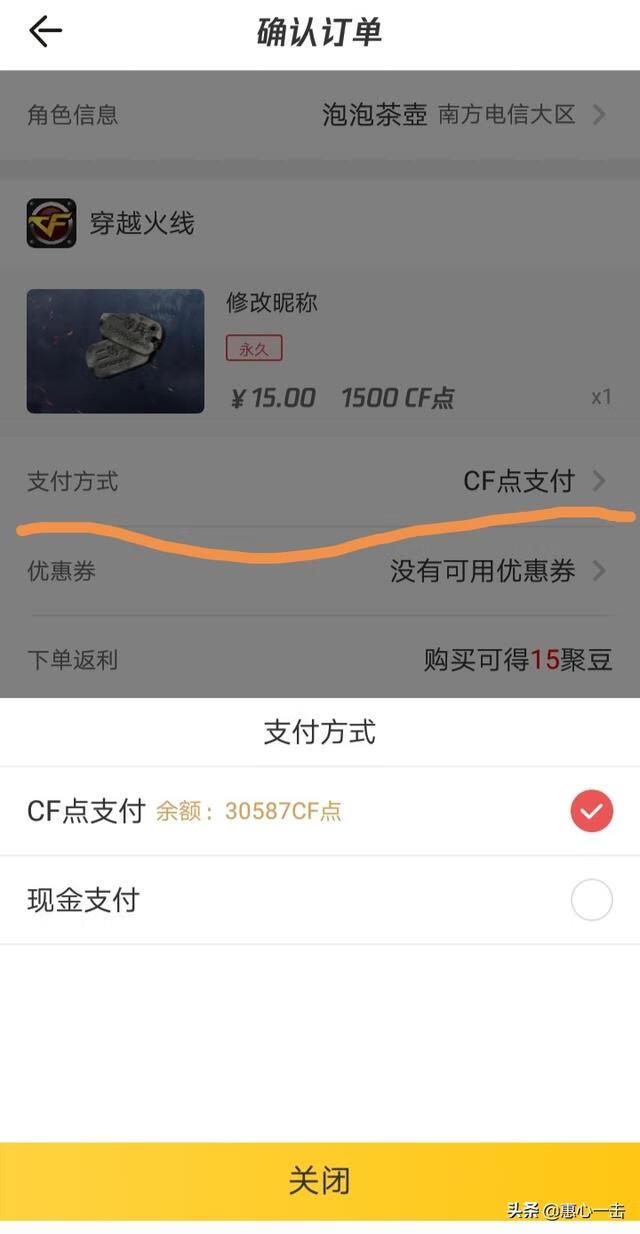 最后点击购买在购买的时候看图三选择cf点支付,只需要1500cf点就可以购买改名卡。