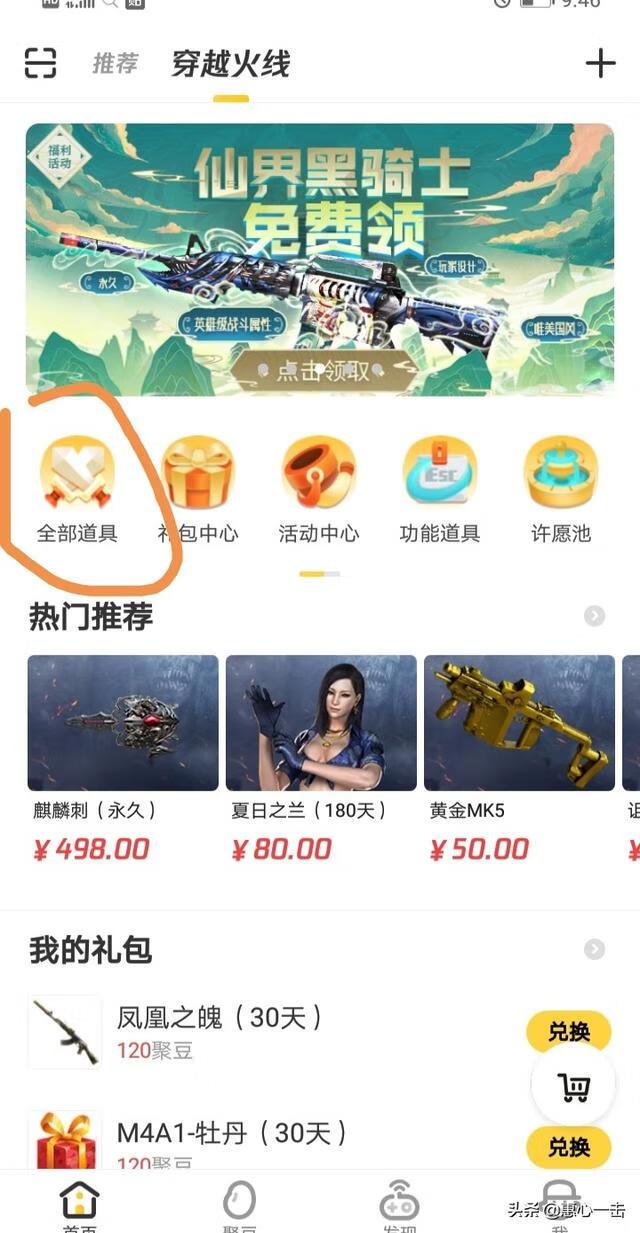 2.第二个办法那就是下载一个"掌上道聚城"APP,然后选择游戏穿越火线在点全部道具看图一。