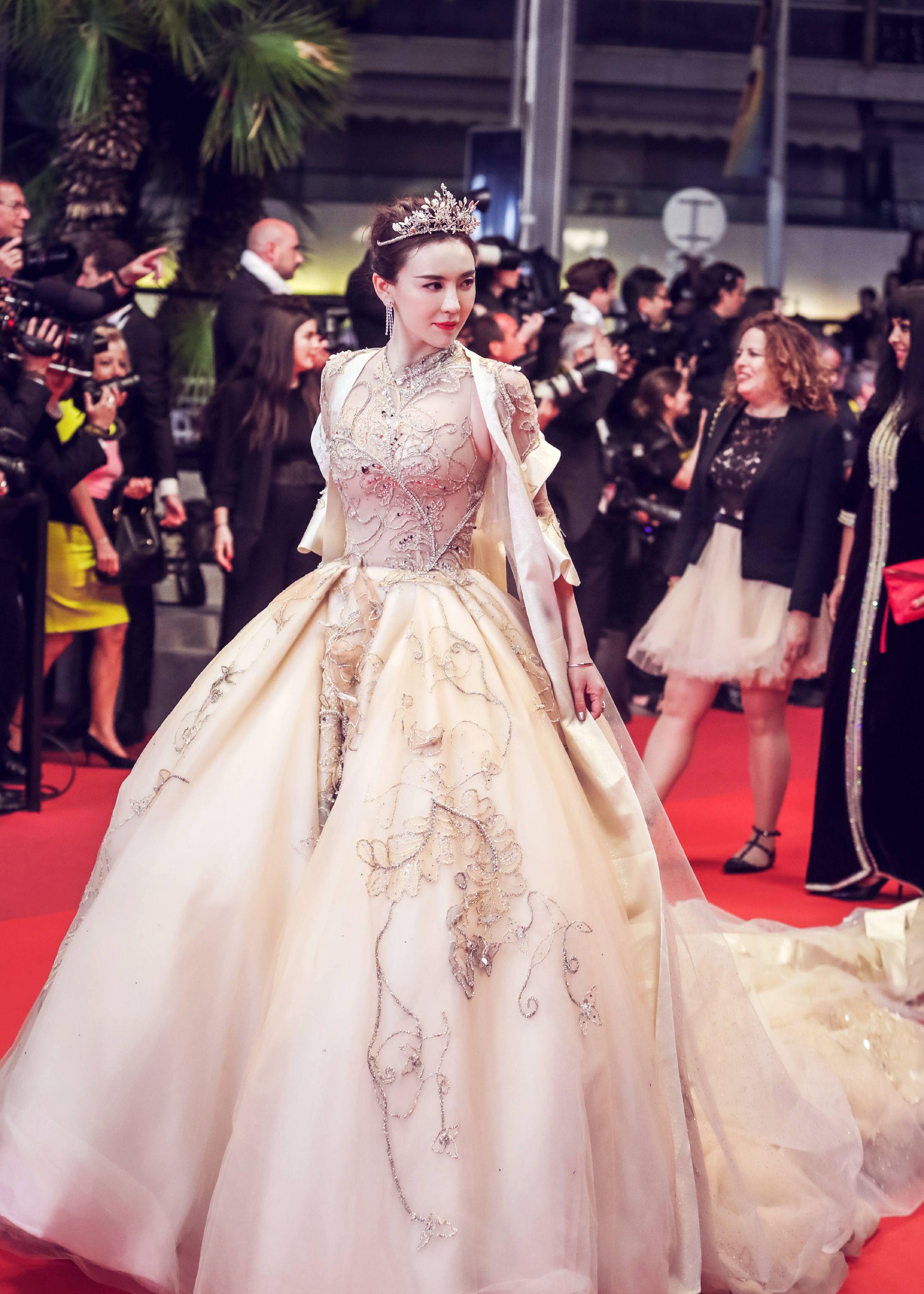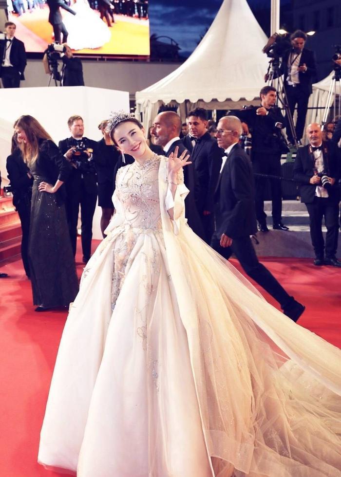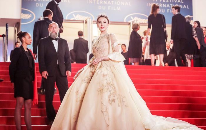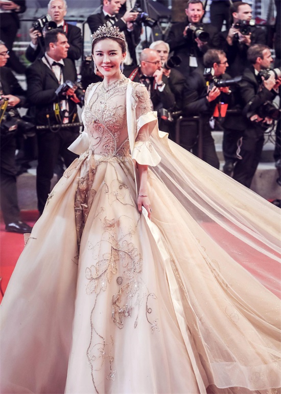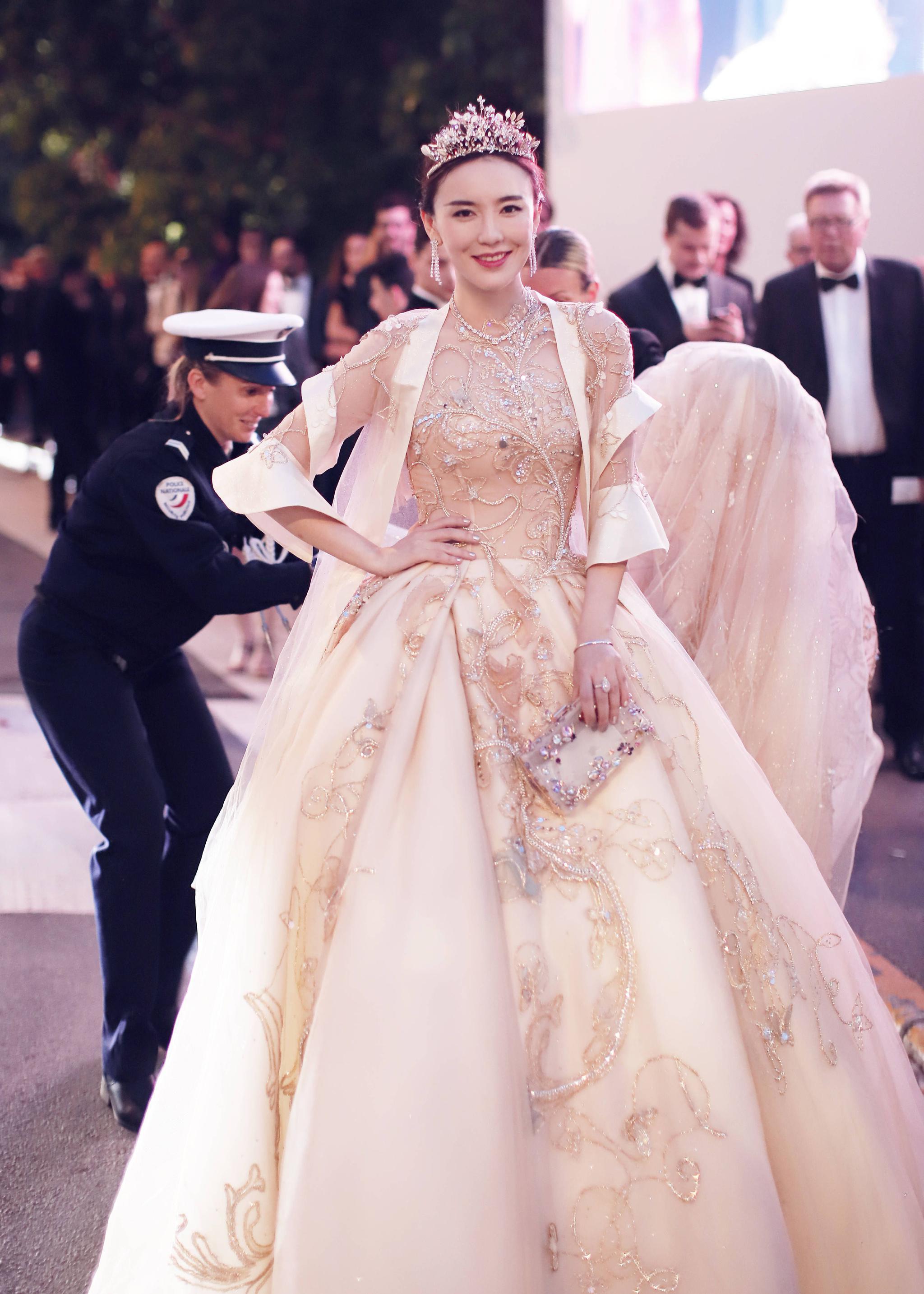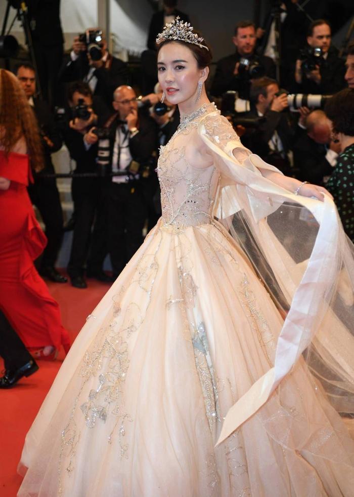 很刚很勇敢!吕佳容戛纳红毯十万走一趟?戴皇冠粉钻石
