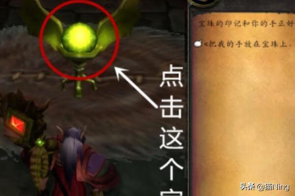 6、在路的尽头可以看到一个宝珠。点击宝珠并对话,就可以进入黑翼之巢副本了。(要做过黑翼之巢开门任务才能进)