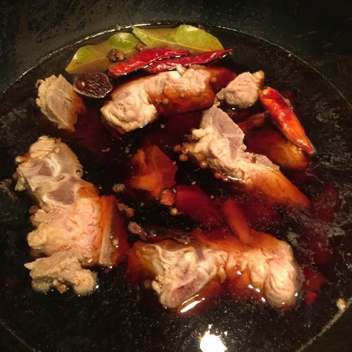 贴士2、这道酱脊骨制作简单,是先放水后放脊骨,可以先放脊骨翻炒然后调料上色,再加入清水炖煮,都是可以的,只是这样减少了油烟的生成,更方便些。