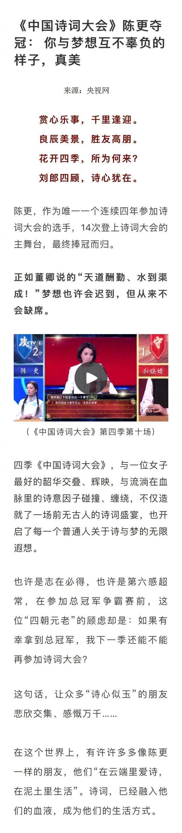《中国诗词大会》陈更夺冠: 你与梦想互不辜负的样子,真美