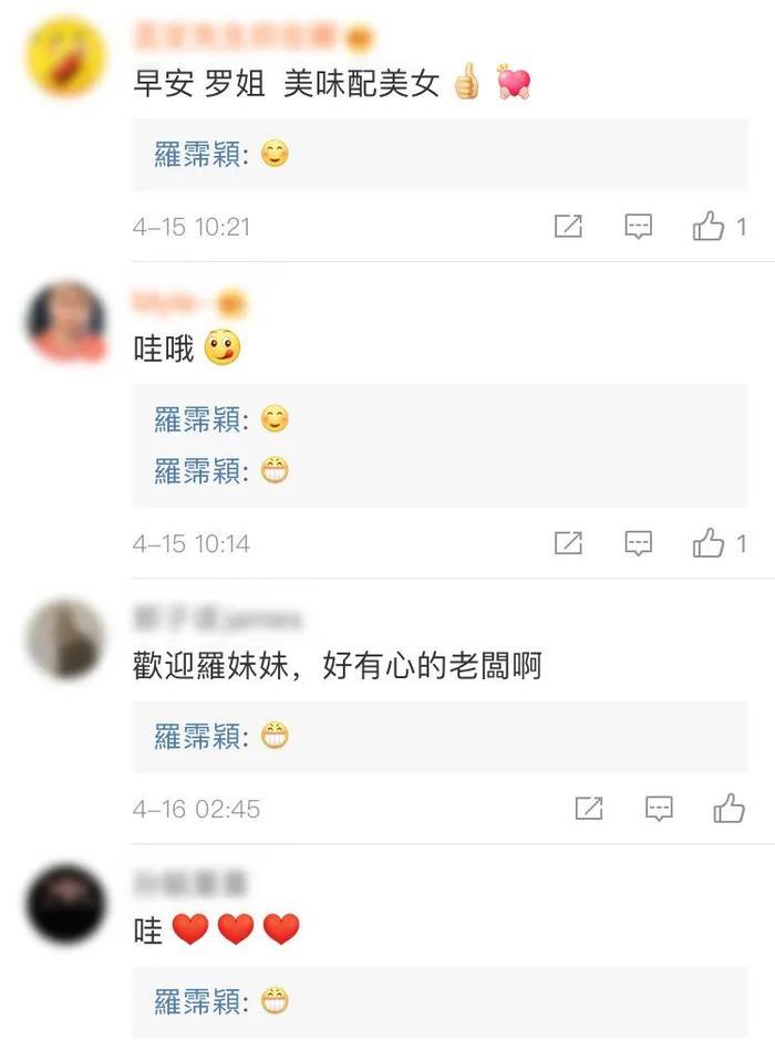 宠到什么地步呢?每一条新微博绝大多数评论,她都会一一回复,最少也会回几个字、一个表情。