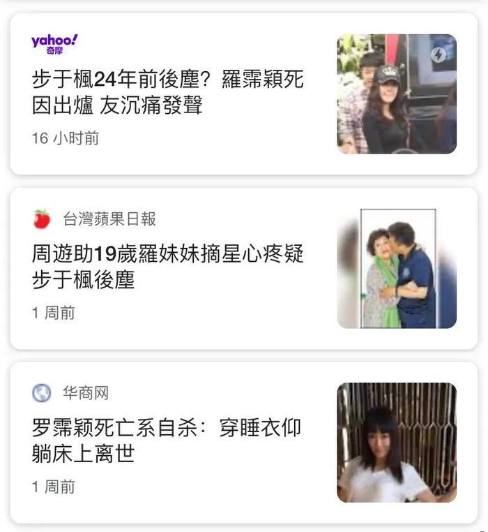 1996年,与罗霈颖亲如姐妹的歌手于枫因为婚姻危机深受创伤,上吊自杀。
