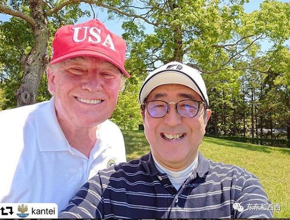 他是与特朗普一起打过最多次数高尔夫球的领导人,喜滋滋发自拍↓↓ 其他首脑来问他:安倍桑啊,你是怎么约球的?