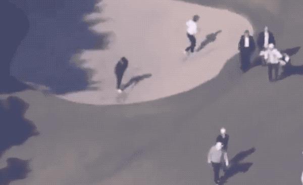 大boss打完,自顾自往前走了,安倍一看不行,赶紧跟上啊,没想到爬上沙坑没站稳栽下去,一个筋斗又起来追。60多岁的人,真心太不容易了↓↓