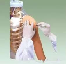 注射位置选取一般在前臂掌侧下段避开静脉处、小角度近似平行进针、当针头斜面完全进入皮内即可注入试验液0.1ml、最佳注射后皮丘上应有两到三个左右毛孔。