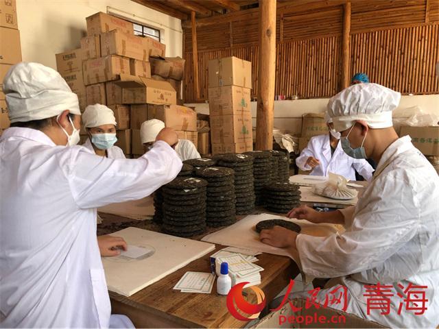 苦聪山寨茶业有限公司里正在包装茶饼的苦聪工人。人民网 刘沛然摄