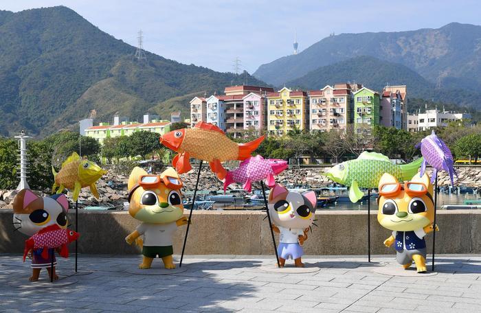 在查验禁区许可证后,记者获准进入香港沙头角禁区。顺着修葺一新的海滨步道,沿途可见沙头角之角、日月亭、中英街花园等打卡点。小广场上,一群举着五颜六色鱼灯跳舞的卡通动物雕塑,吸引了游人的目光。沙头角鱼灯舞迄今已有300多年历史,早已入选国家级非物质文化遗产。