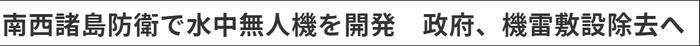 日本此次开发无人潜航器,需具备两种功能:一是能在水底布设水雷等,有效阻碍敌军“从海上进攻‘西南诸岛’”;二是能在面临“海上封锁”时,可以执行清除水雷、替自家舰艇打开航道。
