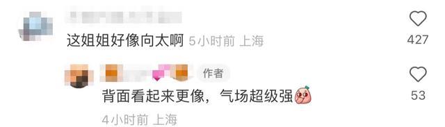 网友们看见动态后留言称“这姐姐好像向太啊”,偶遇其的网友也回复称“背影看起来更像,气场超级强”。
