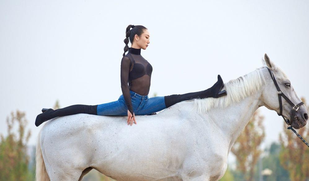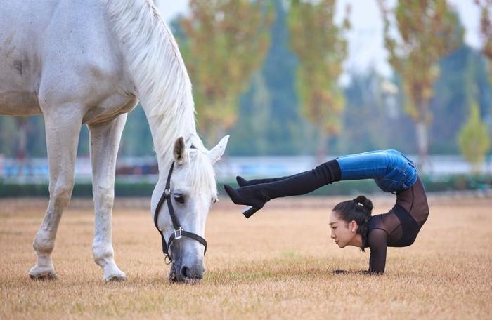 图为刘藤在马儿面前做出难度动作,马儿很温顺,一人一马,“与马共舞”,画面十分温馨。《被誉为“中国柔术女王”,挑战各种高难度动作,中国的“蜘蛛侠”》