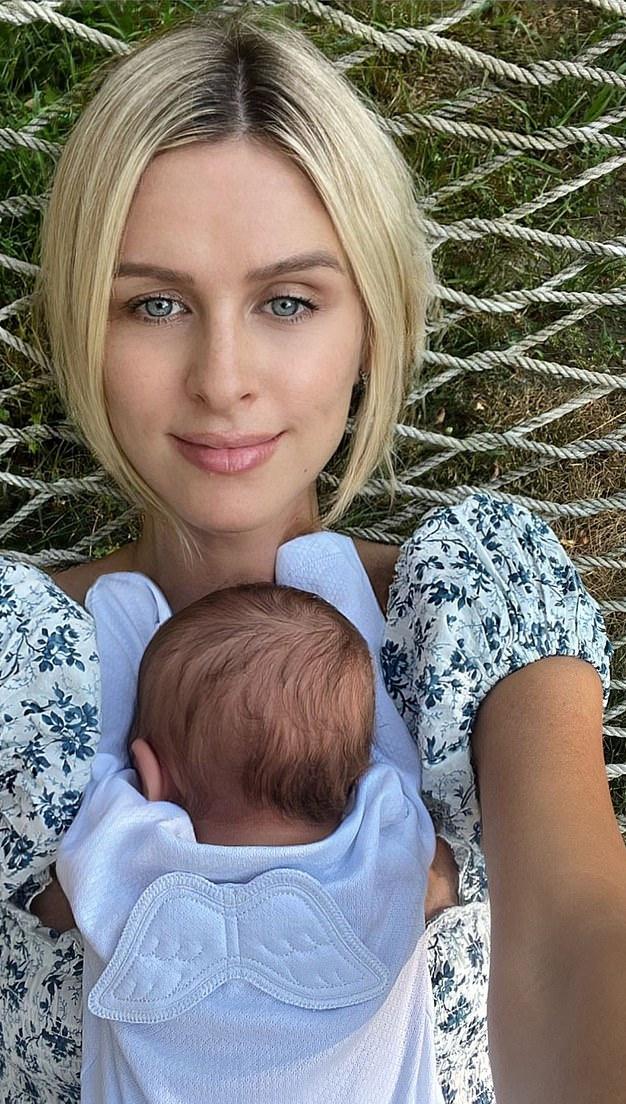 新出生的儿子穿着小天使翅膀点缀的连体裤,趴在希尔顿二小姐身上,太温馨了。妮基很少素颜亮相,即使之前挺着9个月的孕肚,都还是保持着非常精致的一面。