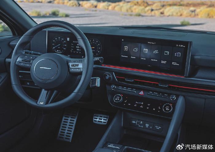 内饰上,由于我们还并没有获得国产版本车型的具体内饰变化,所以暂时还是先拿海外版本作为演示说明,新一代索纳塔的内饰风格同样融合了一些复古的设计,但整体核心还是温馨路线,没有外观变化那么大,连贯式的空调出风口装饰件以及双联屏,增加了车内视觉宽度,给予了这款车十足的当代设计感,而控制台区域的各种实体按键又充满了传统色彩,整体来说,十一代索纳塔可以说是既有新潮又有复古,不过后续国产车型可能整体的科技氛围会更强一些。