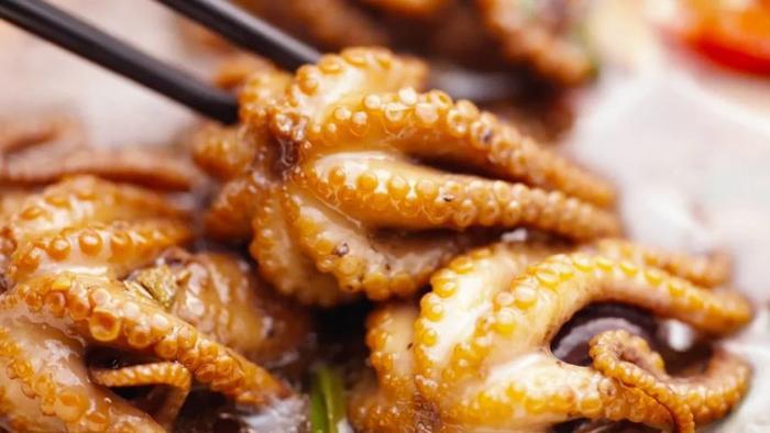 红烧望潮——浙东人最喜欢的做法是红烧,使表层的胶原蛋白在高温下迅速分解,形成浓油赤酱的自来芡。口感柔韧爽滑,是一道妙趣横生的开胃菜。