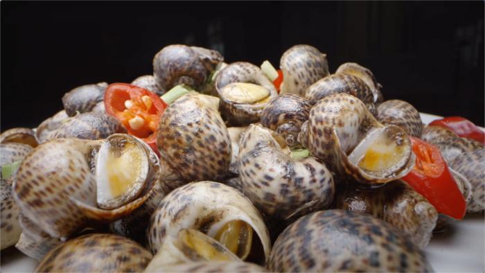 香螺爆炒——辛香入味螺肉,厚实弹牙,最适合拿来下酒。嗦一口香螺,喝一口劲酒,海鲜肥美,劲酒滋补,好吃到停不下来。