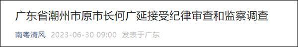 (观察者网讯)据广东省纪委监委官方公号“南粤清风”6月30日消息,广东省潮州市原市委副书记、市长何广延涉嫌严重违纪违法,目前正接受广东省纪委监委纪律审查和监察调查。