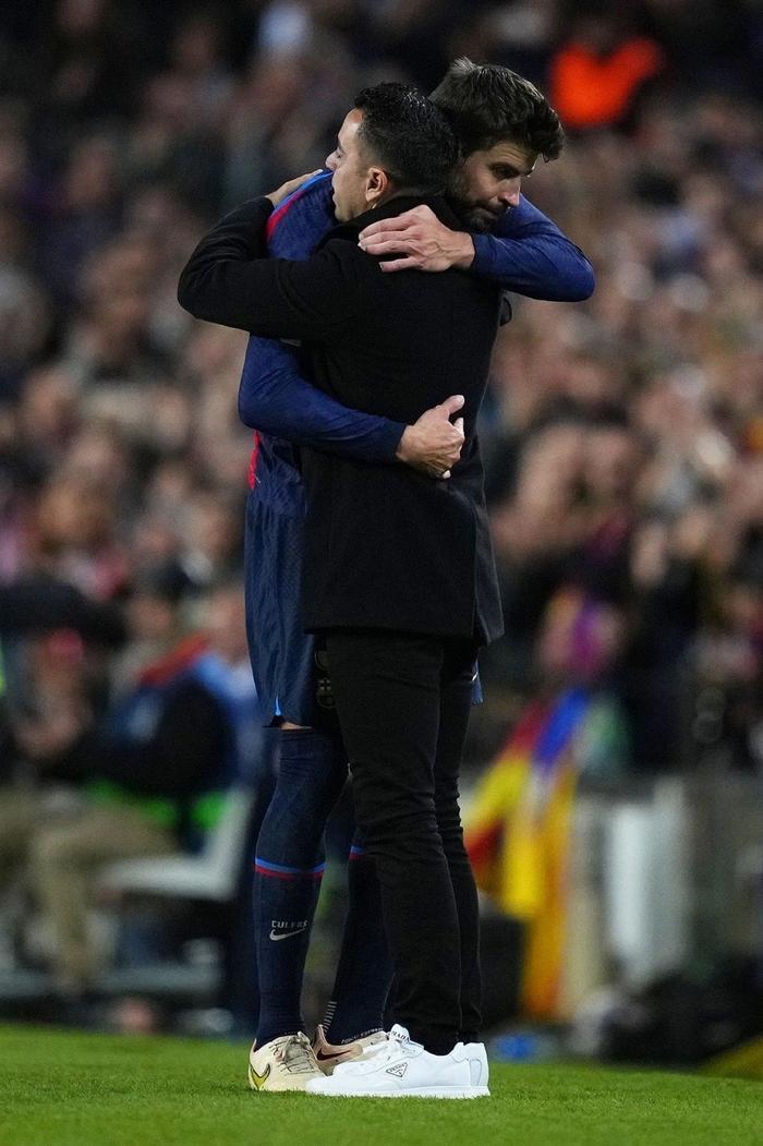 在现场92605名观众的见证下,皮克缓缓走下了场,他和场上以及场外的每一名队友、教练组成员都进行了拥抱,他在用这样的方式和他们告别。这一幕也令无数球迷为之动容,场边的哈维在和皮克拥抱时,眼中泛起了泪光,显然对于曾经并肩作战的队友离去,他内心也充满了不舍。