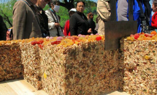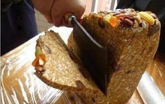 上图这其貌不扬的食物,就是今天介绍的民族特色了。来自新疆的切糕,曾经真的是名气特别的大,火爆全中国,在街头巷尾都可以见到它的身影。新疆这个地方的地域特别的辽阔,在这里物产特别的丰富,有大量的水果干果产出,于是当地人就用这些食材做出了今天说的这款切糕这个美味。他要将所有的食材先蒸熟,之后再放入模具里面压实。