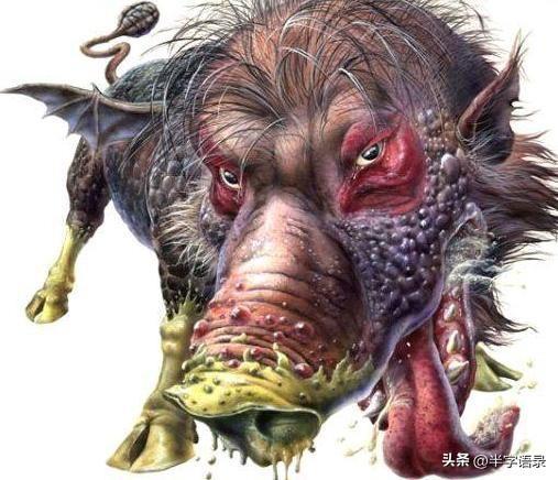 猪头狗身,身躯巨大,黑毛,硬刺,赤目,能暗中视物。喜食腐物,喜居阴暗潮湿处。