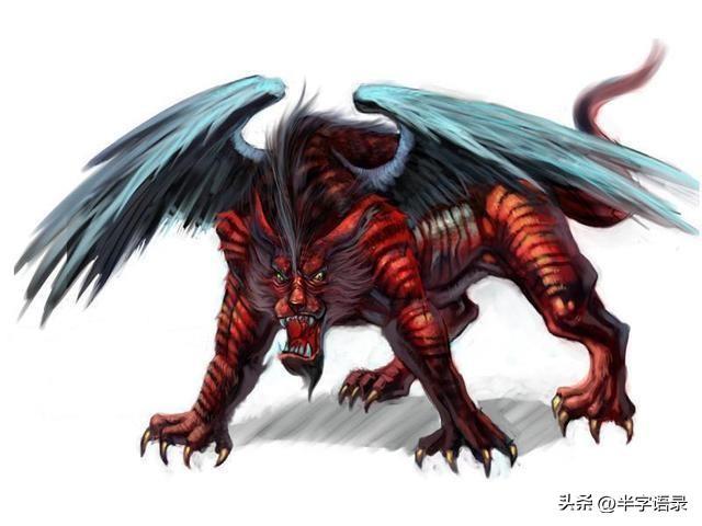 人面马身,有虎纹,生鸟翼,声音如榴。号称是替天帝看花园的神,但看起来充其量不过是只神兽而已