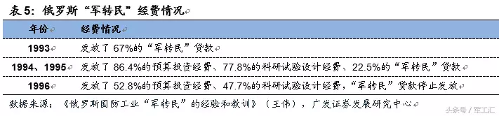 军工企业处境艰难,开展军转民是最佳出路。苏联解体后,俄罗斯继承了苏联大约70%的国防工业企业,80%的科研生产能力,85%的军工生产设备和90%的科技潜力。但是随着冷战结束带来的军费大幅度削减、武器装备订货量锐减,俄罗斯国防工业处境艰难;1996年,军工企业开工率仅为10-15%。与此同时,俄罗斯经济处于不断衰退中,俄罗斯认识到,如果不改变军工这种相对独立的庞大体系,并转为国民经济服务,很难实现恢复国内经济发展。