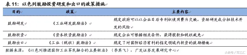 推行公平竞争和企业投资激励政策。20世纪90年代初,以色列对国防部所属机构和企业进行改制,推行国有军工企业自主经营、自负盈亏的政策。为吸引国内外投资,以色列政府出台了各类措施鼓励投资研发和出口。以色列在国防工业的发展中,重视吸纳各方面的管理和技术人才,制定鼓励发展“知识经济”和重视知识分子的政策。政府一方面自主培养科技人才,另一方面广纳世界科技人才。