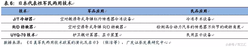 军民两用技术和产业迅速发展。近几年来,日本为了谋求政治大国和军事大国地位,不断加大国防科研投入,大力发展本国的民间军事工业。日本采用高度集中的管理体制、政军民相结合的决策运行机制,扩大民品生产和发展两用技术,并针对可生产军品的民间企业推出优惠扶持政策并给与资金支持,大大促进了军民两用技术和产业的发展。