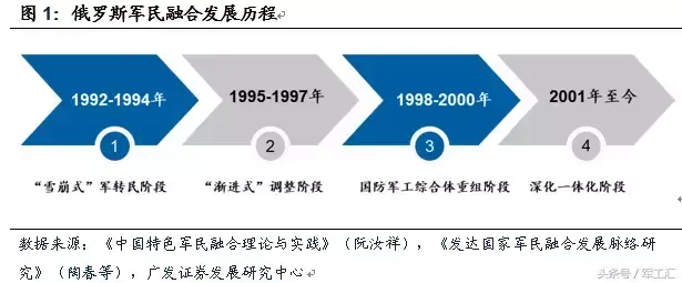 自1992年起,俄罗斯开始了四个阶段的军民融合(主要是军转民)之路。