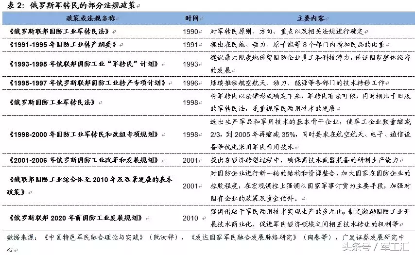 1、俄罗斯:行政干预下的军民融合,且行且探索