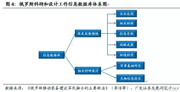 俄罗斯:行政干预,自上而下开展“军转民”,潜力仍未充分发挥。俄罗斯自1992年开始,主要以行政手段,自上而下开展“军转民”。俄罗斯的军民融合历经中央政府主导—地方政府引导—国防工业重组—一体化改革四个阶段,最终形成以国家军工-金融综合体为主导的武器装备研发体系。通过“军转民”,俄罗斯民品竞争力有一定提升但整体竞争力不强,军工生产潜力仍未充分发挥。