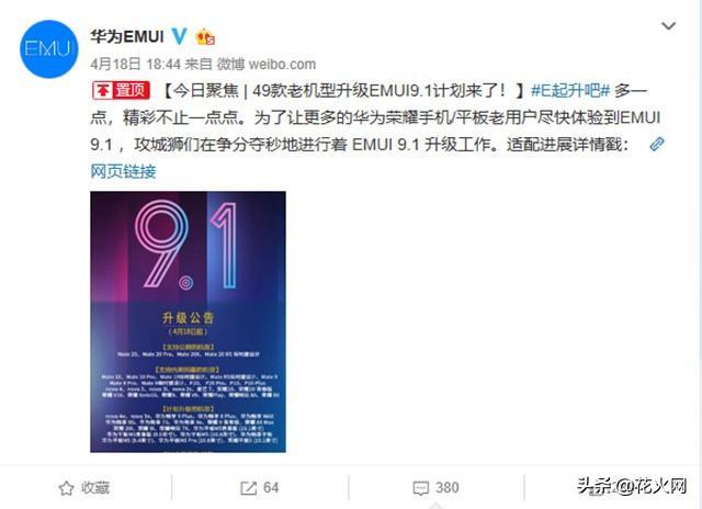 4月18日,华为官方就放出了EMUI9.1系统的升级公告,支持49款老机型升级,其中,包括7款平板电脑。