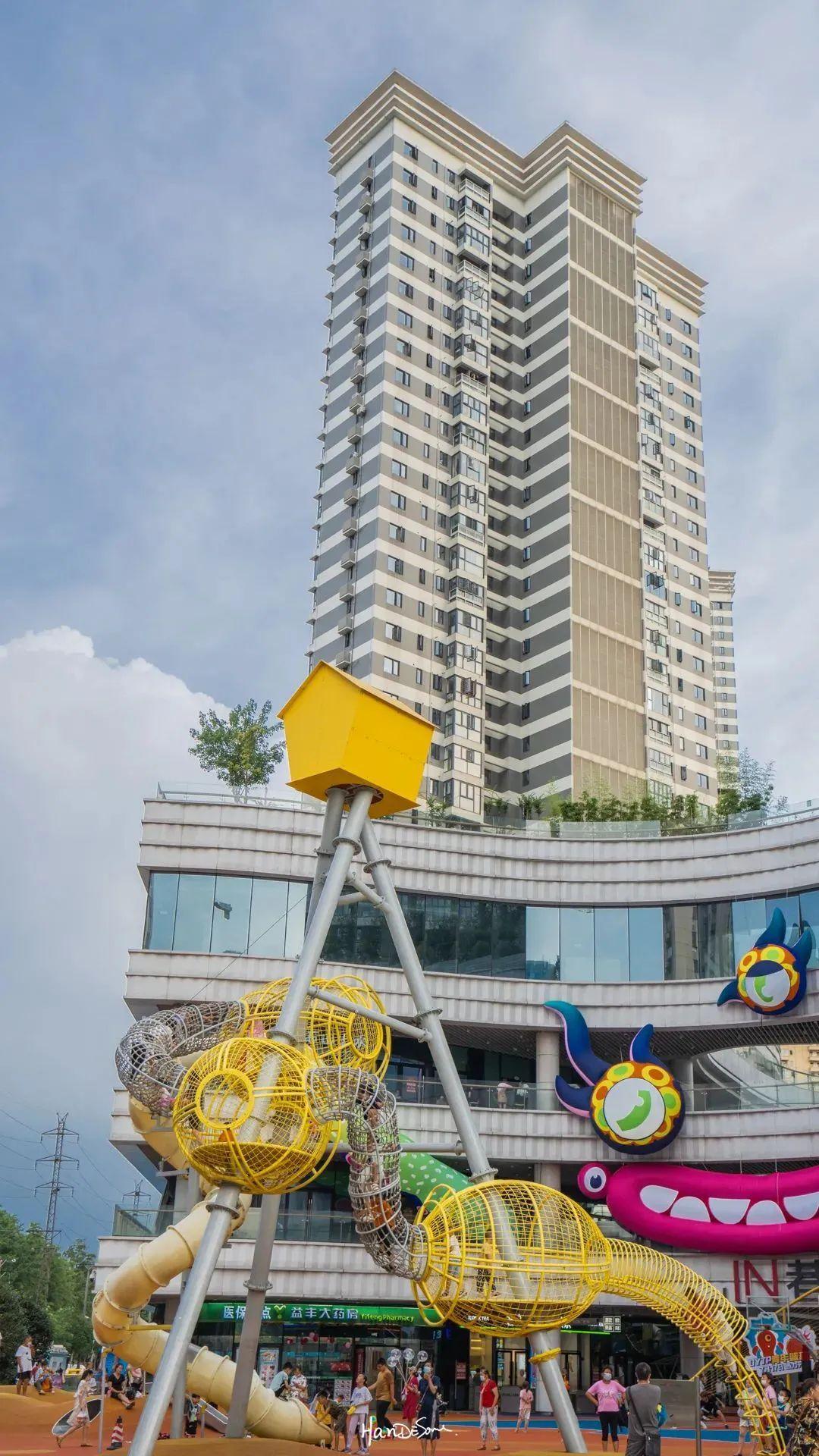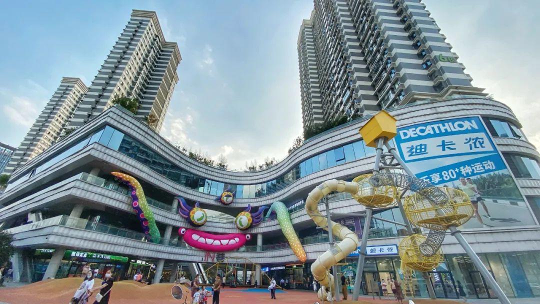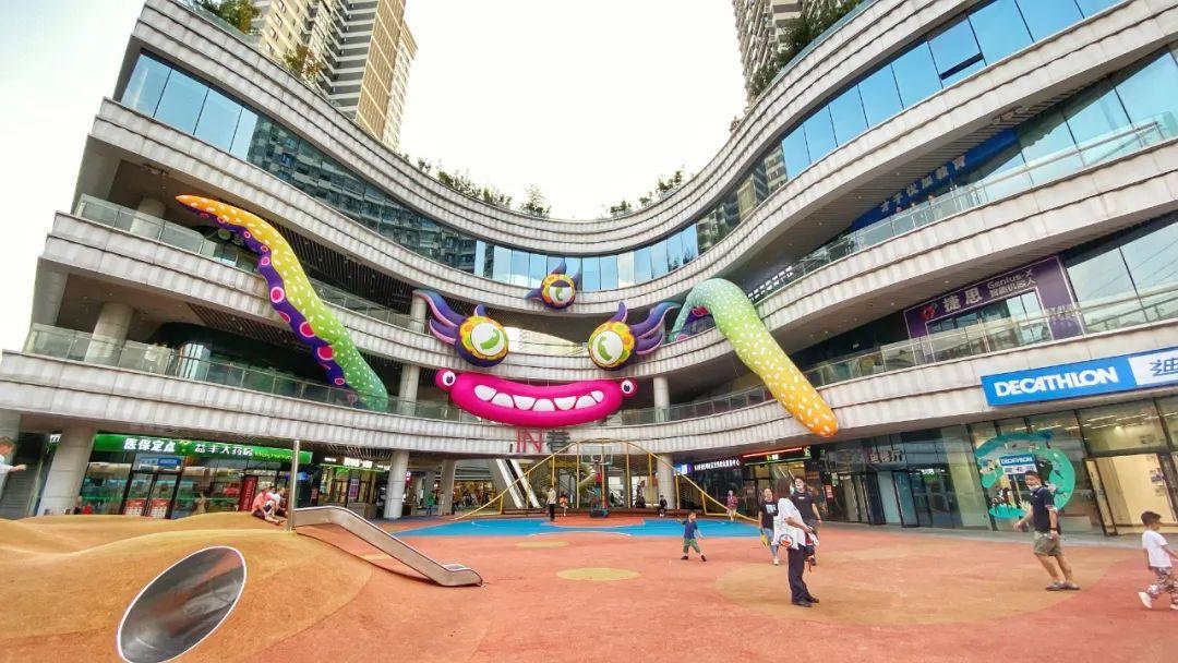 北侧入口靠近另一家主力店迪卡侬,打造了目前区域内最大的免费儿童游乐空间,用公共空间的打造思路,设置了丰富的娱乐、休憩和运动场景